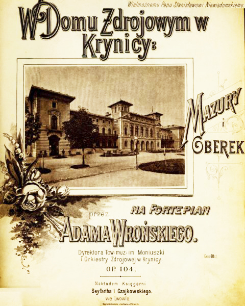 Orkiestra Zdrojowa została założona w 1875 r. przez Adama Wrońskiego i pod jego batutą stanowiła najpoważniejszą atrakcję sezonu letniego. Dbał on zarówno o dobór wykonawców, jak i program. Obok muzyki tanecznej umieszczał w repertuarze małe formy symfoniczne (uwertury, fantazje, miniatury liryczne itp.). Kompozytor ten, urodzony w 1850 r. w Krakowie, studia muzyczne odbył w Wiedniu. Był dyrygentem orkiestr wojskowych, dyrygował m. in. na Wystawie Przemysłowej w Paryżu w 1889, prowadził orkiestrę Teatru Starego w Krakowie. Kierował też orkiestrami w miejscowościach uzdrowiskowych, przede wszystkim przez 40 lat w Krynicy. Był dyrektorem Towarzystwa Muzycznego w Kołomyi, dyrygentem w Teatrze Skarbka we Lwowie, skrzypkiem – solistą, pedagogiem. Komponował popularną muzykę taneczną i ludową, nazywany był często polskim Straussem.